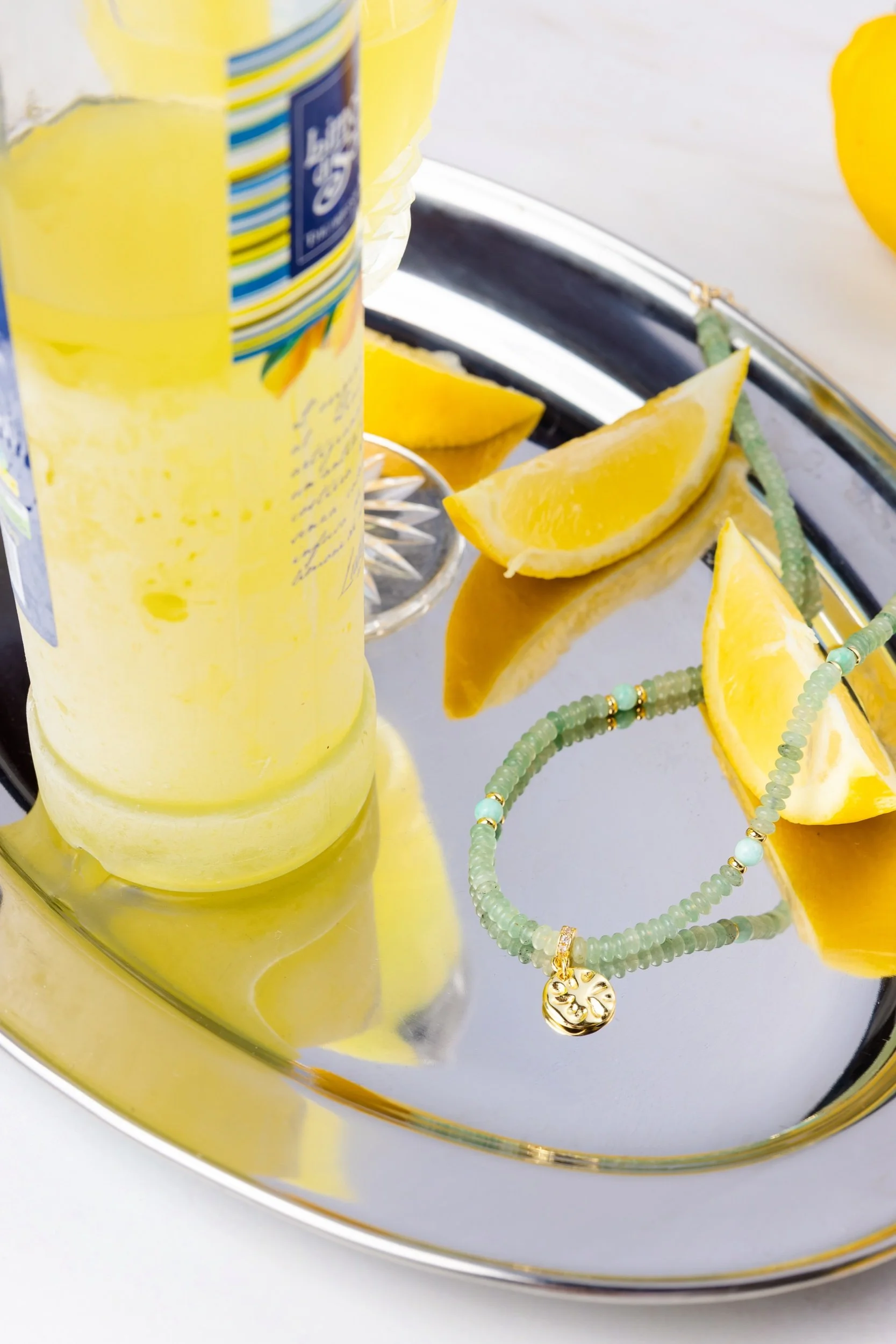 Green aventurine with ancient coin charm