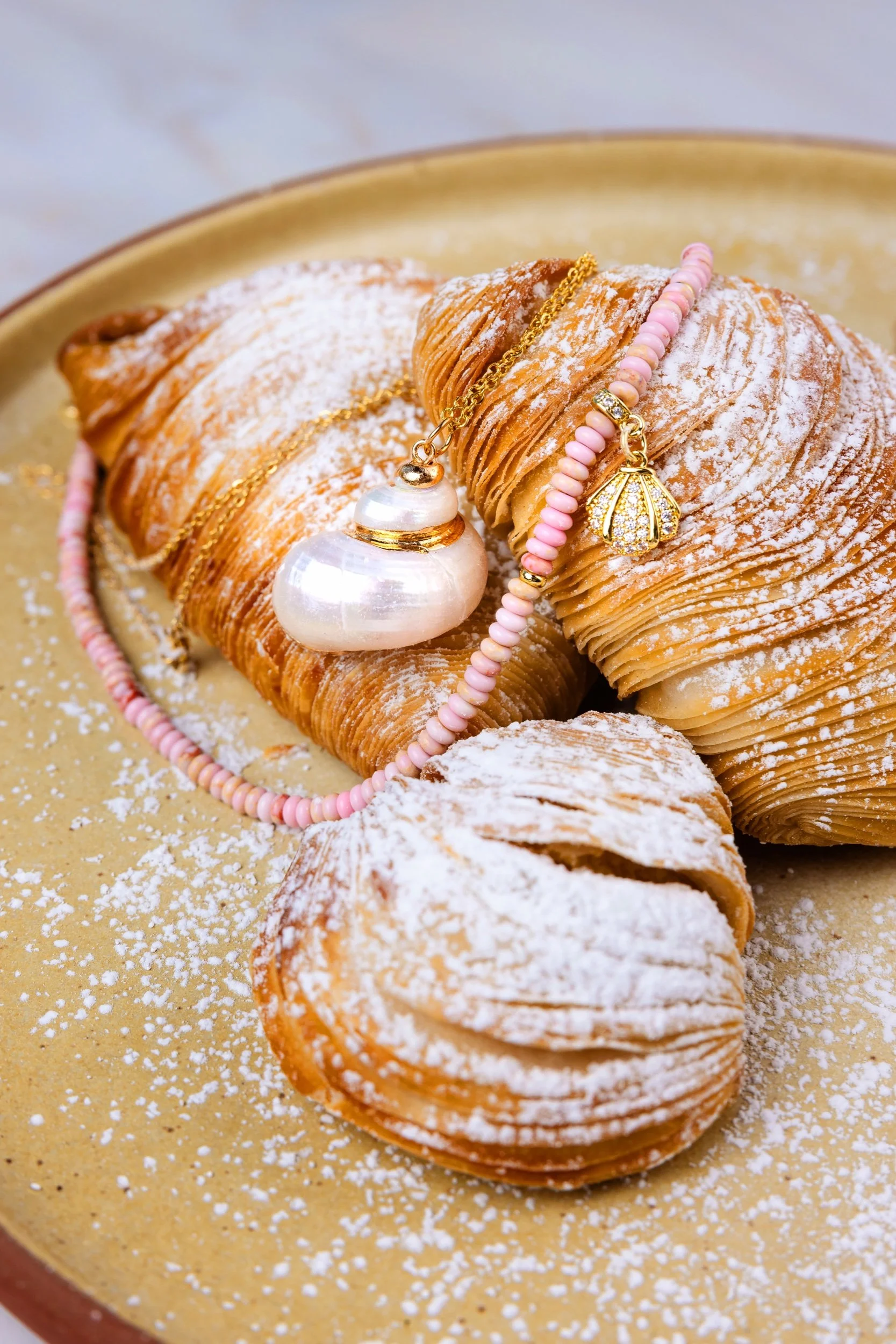 Pink howlite with scallop shell
